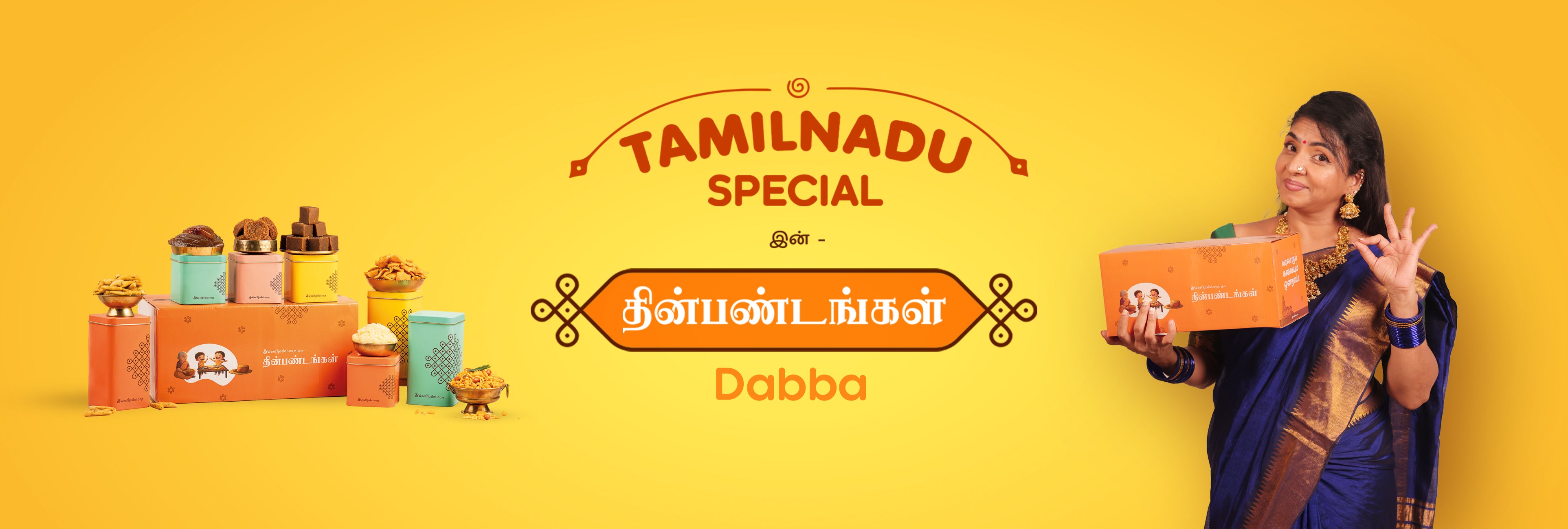 Experience the taste of Tamil Nadu at your doorstep! Thinpandangal Dabba is a curated gift box featuring iconic treats like Tirunelveli Halwa, Srivilliputhur Palkova, Sattur Kara Seeval, and more. Perfect for festivals, gifts, or indulging in authentic flavors.